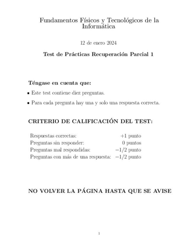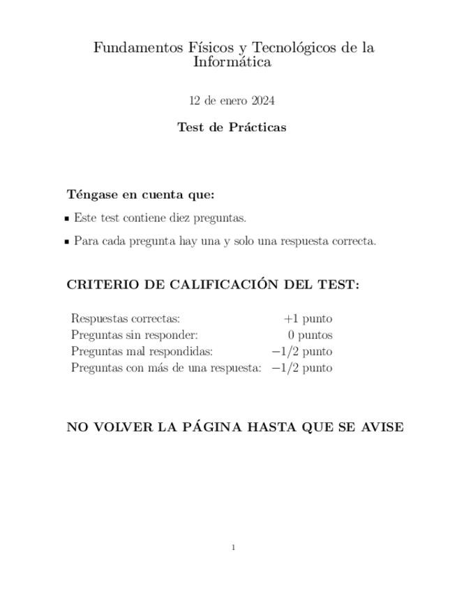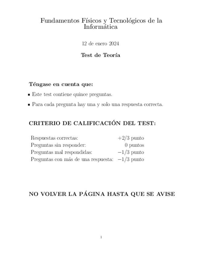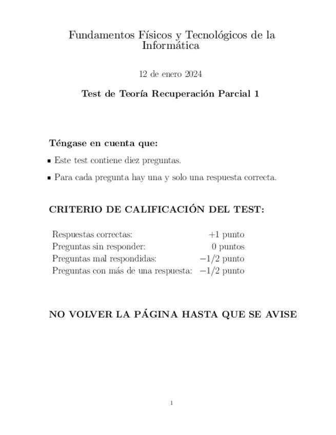 Apuntes para la parte del tipo test de teoría del segundo parcial en la asignatura de Fundamentos Físicos y Tecnológicos de la Informática
