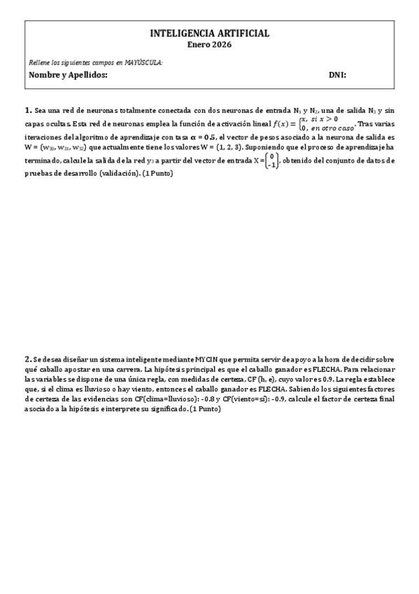 Examen del Tercer Parcial del Tema 4 y Tema 5 de Inteligencia Artificial - Enero 2026