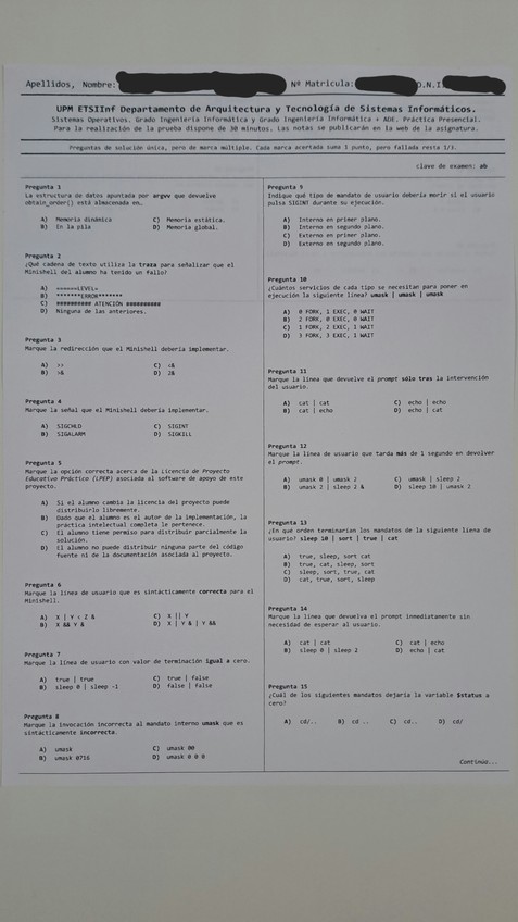 He publicado nuevos test de 3º Sistemas Operativos: Test Práctico - Minishell - Enero 2026