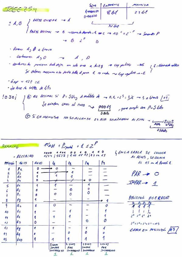 formulario y ejercicios primer parcial, IEEE754, Hamming y Trenecitos de amplificadores