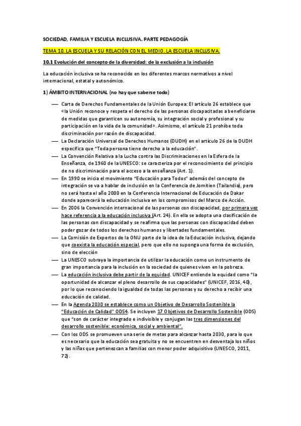 Apuntes segunda parte de sociedad, familia y escuela inclusiva. (temas 10, 11)