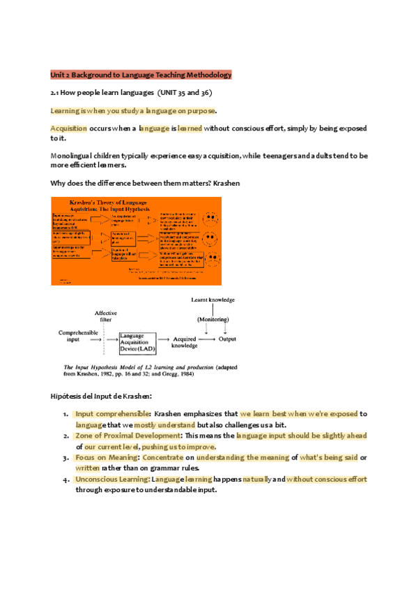 Explicación sobre cómo llevar a cabo y diseñar técnicas de aprendizaje para la adquisición de idiomas extranjeros como el inglés