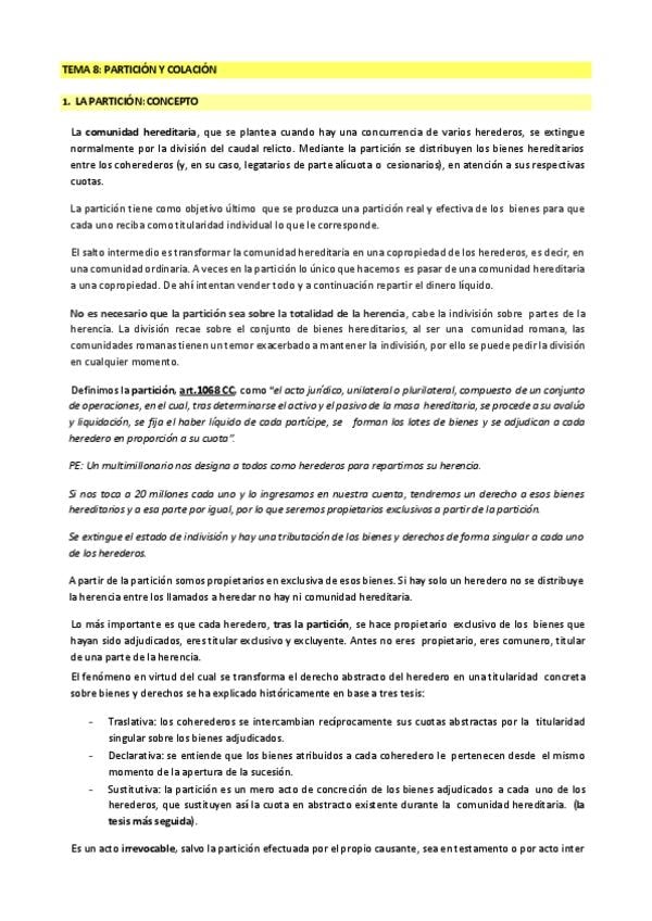 He publicado nuevos apuntes de 3º Derecho de Familia y Sucesiones: TEMA-8-PARTICION-Y-COLACION.pdf