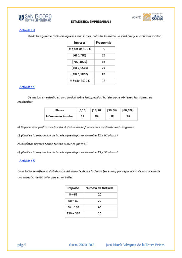 He publicado nuevos ejercicios de 1º Estadística Empresarial I: Ejercicios +