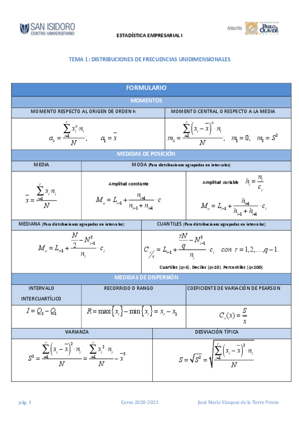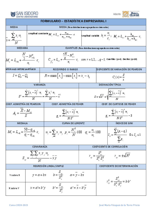 He publicado nuevos apuntes de 1º Estadística Empresarial I: Resumenes + formulario