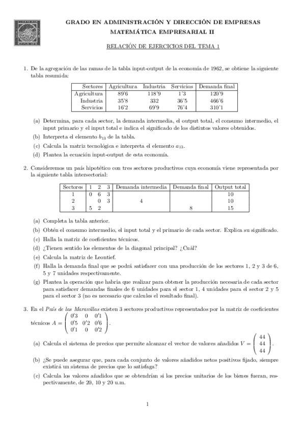 He publicado nuevos ejercicios de 1º Matemática Empresarial I: Ejercicios matemática I