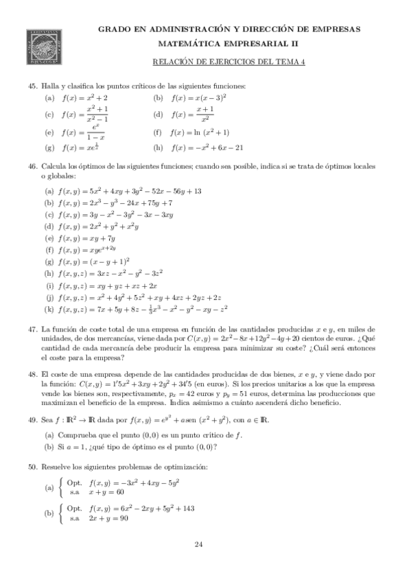 Ejercicios matemática empresarial II