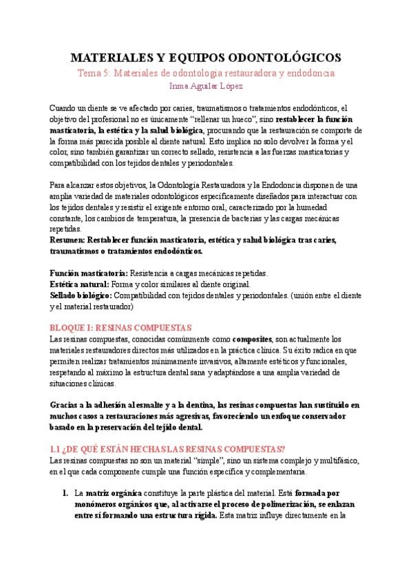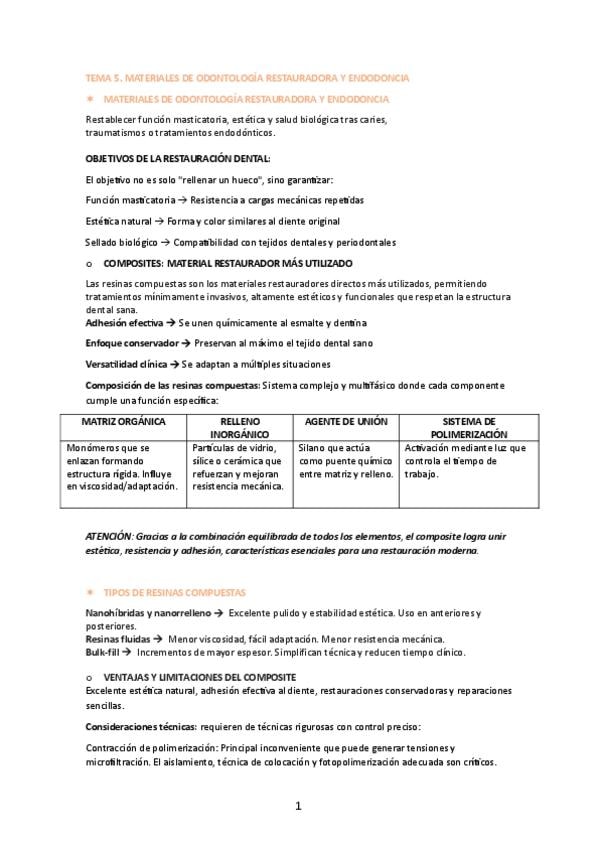 Tema 5: Materiales de odontología restauradora y endodoncia