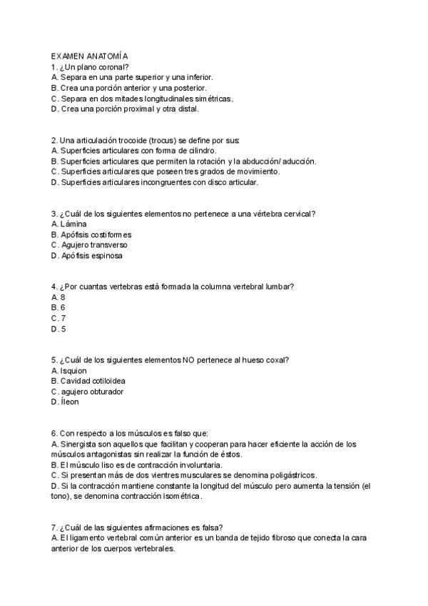 Preguntas separadas de respuestas, de exámenes de varios años.