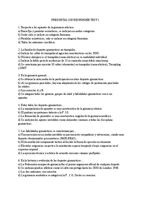 Preguntas separadas de respuestas, de diferentes años, exámenes mezclados, elementos individuales y gimnasia acrobática.