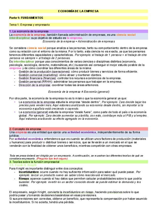 Apuntes Economía de la Empresa - 1º ADE UPO