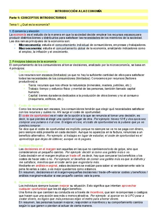 Apuntes Introducción a la Economía - 1º ADE UPO
