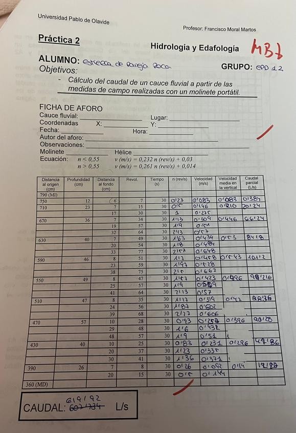 Todas las prácticas de hidrología y edafología corregidas por el profesor
