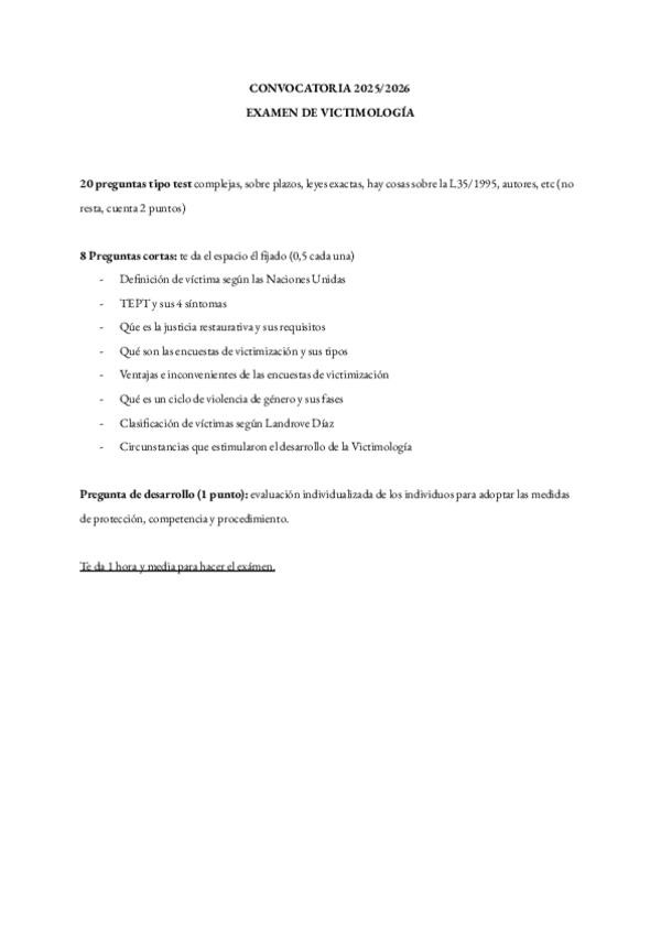 He publicado nuevos examenes de 3º Victimología: Examen-Victimologia.pdf
