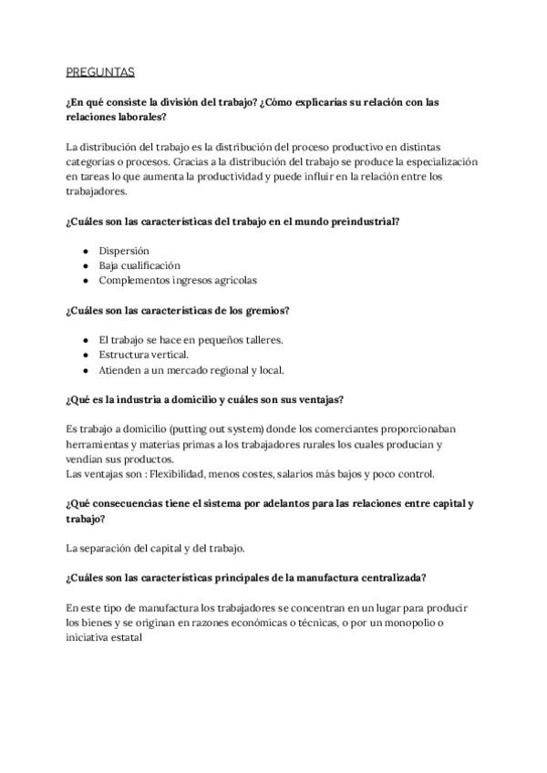 RESUMEN DE TODOS LOS TEMAS DE HISTORIA DE LAS RELACIONES LABORALES, INCLUYE PREGUNTAS Y CONCEPTOS (1º RRHH Y RRLL UPO)