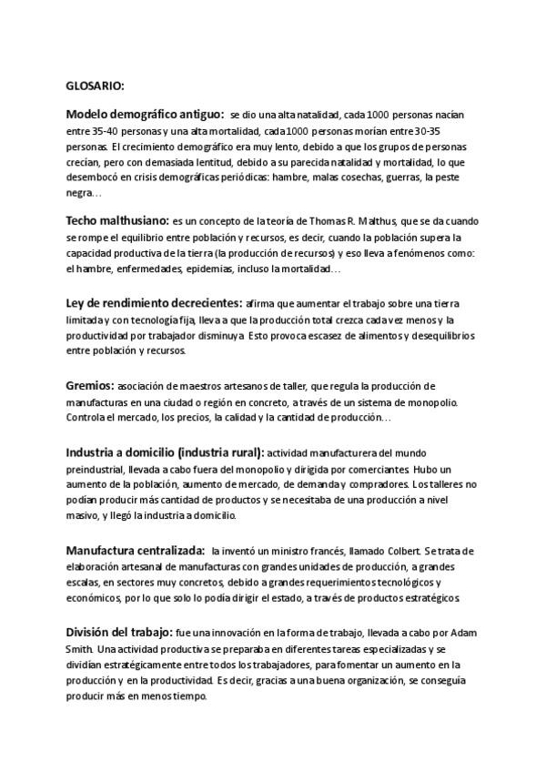Con este documento me preparé el examen de Historia de las Relaciones Laborales. Son definiciones de glosario (la profesora dio todas las palabras), y posibles preguntas de examen desarrolladas (estudiar eso es básicamente estudiar todos los temas, excep