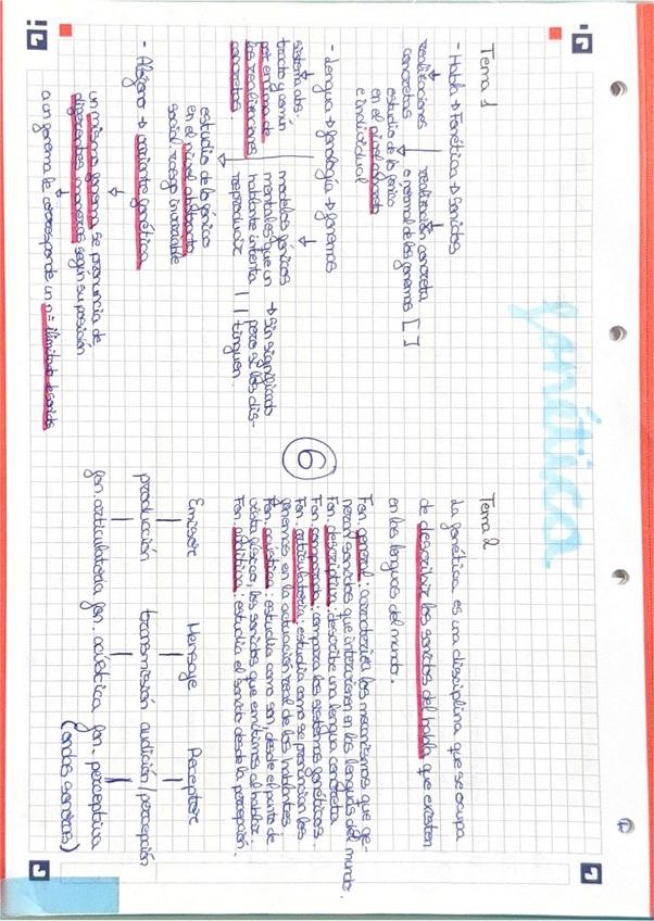 Apuntes escritos a mano, temario completo de la asignatura de Fonética y Fonología de la UPSA.