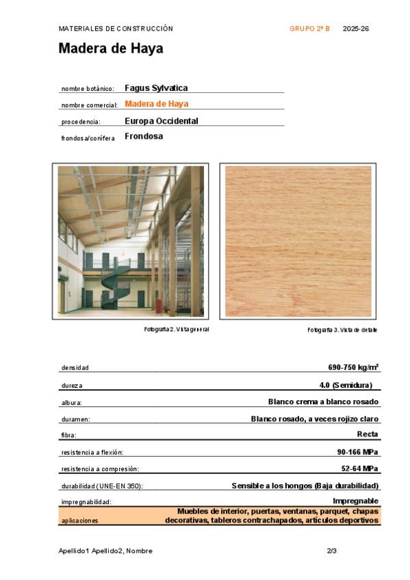 Practica de aula sobre un material de construcción (información, tratamientos, usos, costes...), en este caso madera de haya.