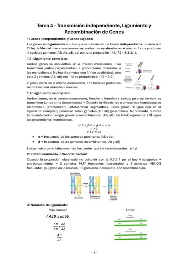Apuntes del tema 4, Transmisión independiente y recombinación génica, de Genética General del primer curso de Biotecnología de la UPV.