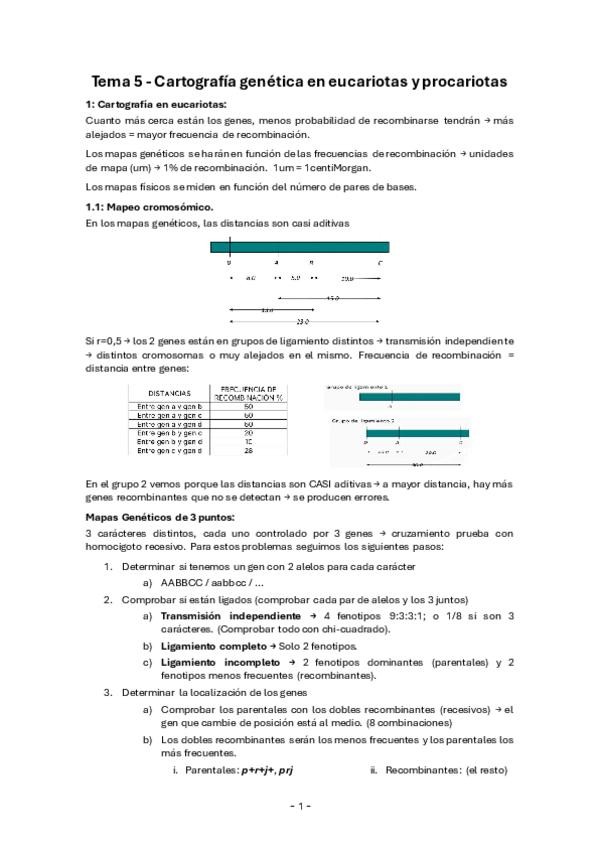 Apuntes del tema 5, cartografía genética, de Genética General del primer curso de Biotecnología de la UPV.