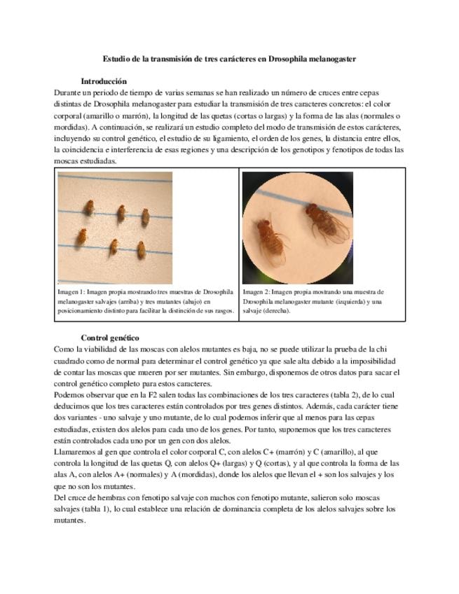 Una memoria de las prácticas de genética, resumiendo el proceso implicado y analizando los resultados incluyendo el conteo F2 de la drosofila.