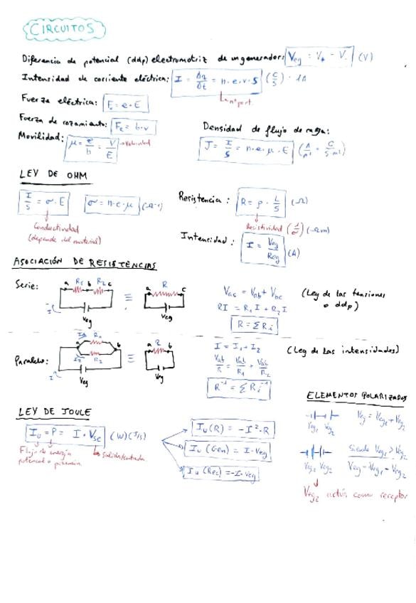 Formularios de los temas: -Campo eléctrico -Circuitos -Gas ideal -Difusión