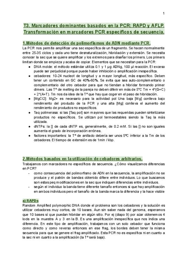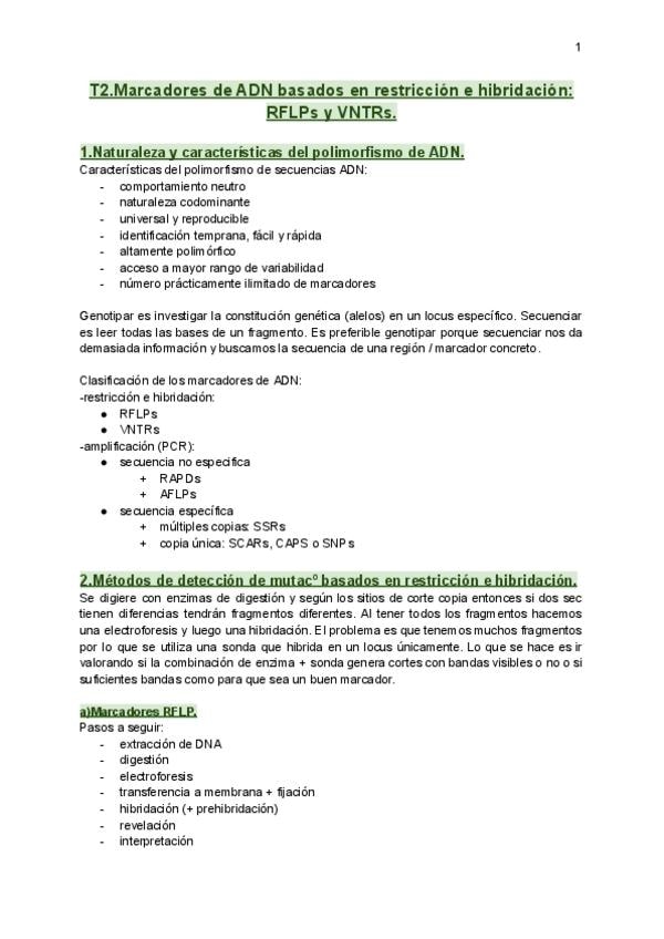 He publicado nuevos apuntes de 2º Marcadores Moleculares: T1-marcadores.pdf