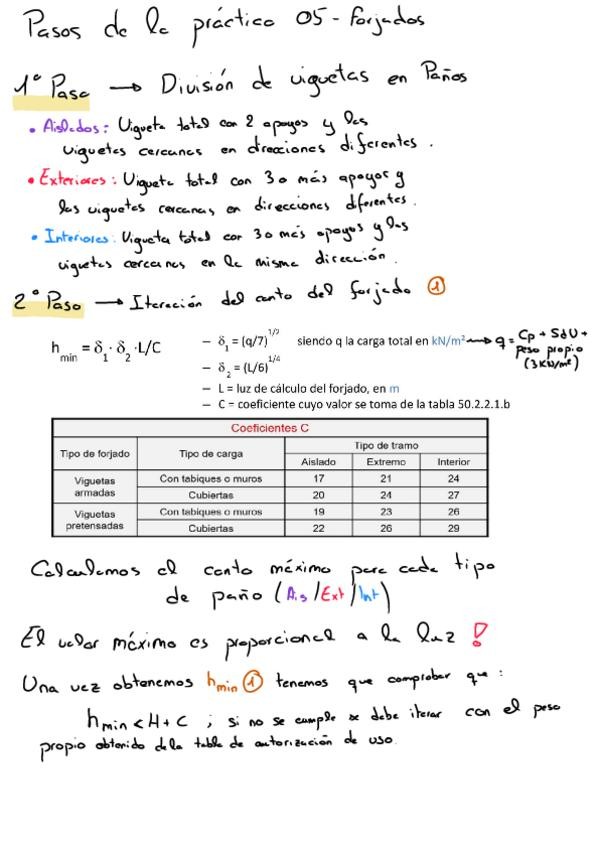 Formulario de problemas de forjado con explicación por pasos de como realizar problemas