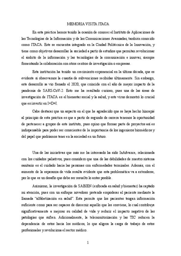 He publicado nuevos practicas de 1º El papel del Ingeniero Biomédico: Memoria-ITACA.pdf