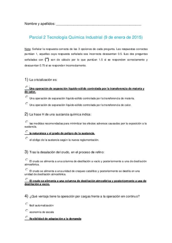 He publicado nuevos examenes de 1º Tecnología Química Industrial: 2oparcial2425Problema1SOL.pdf