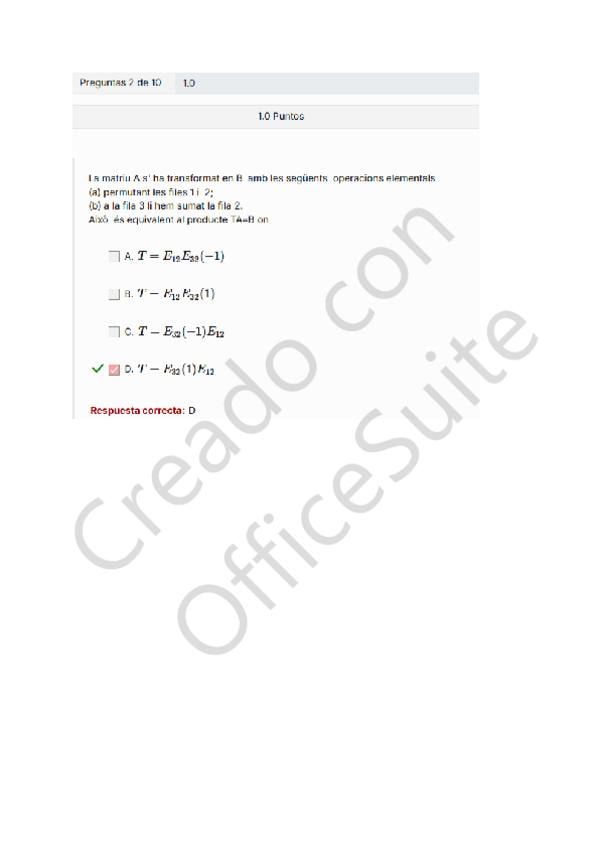 MCTest 2 (Matrius i Operacions elementals) - 2025-26 (Grup B) Test 2 Teoric Algebra Solucions