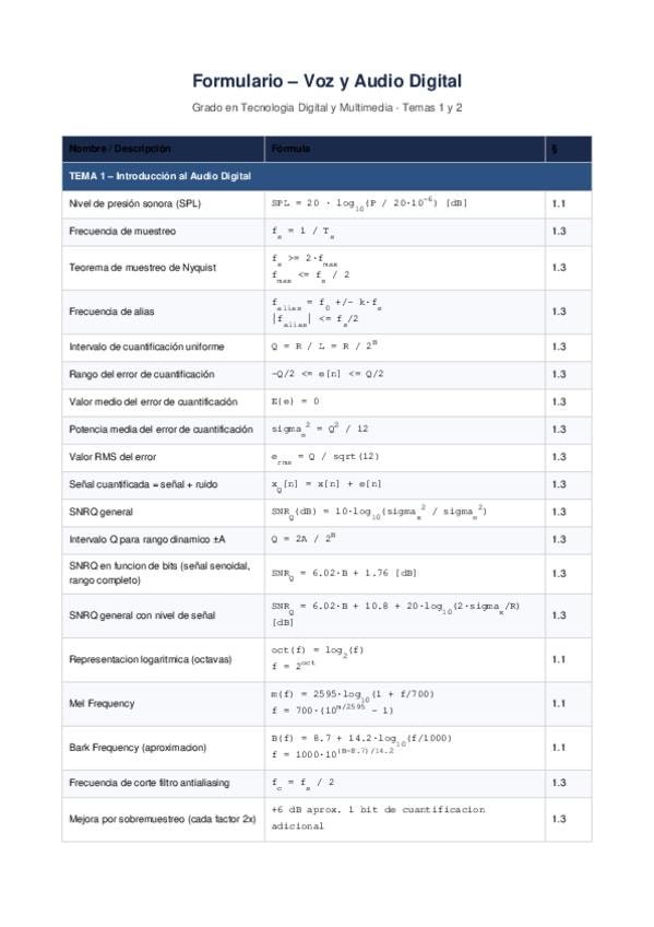 He publicado nuevos apuntes de 3º Voz y Audio Digital: Formularioaudiodigital.pdf