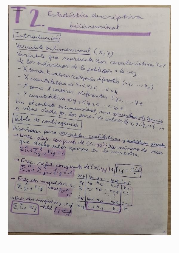 Apuntes del Tema 2: Estadística descriptiva bidimensional del GMAT de la UPV.