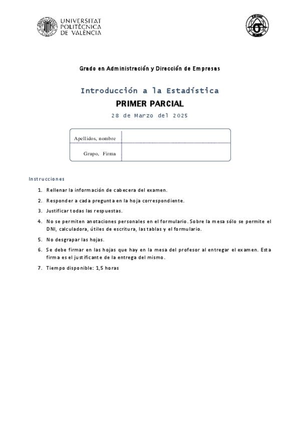 He publicado nuevos examenes de 1º Introducción a la Estadística: 1-Parcial-ADE25propuesta200325-con-soluc.pdf