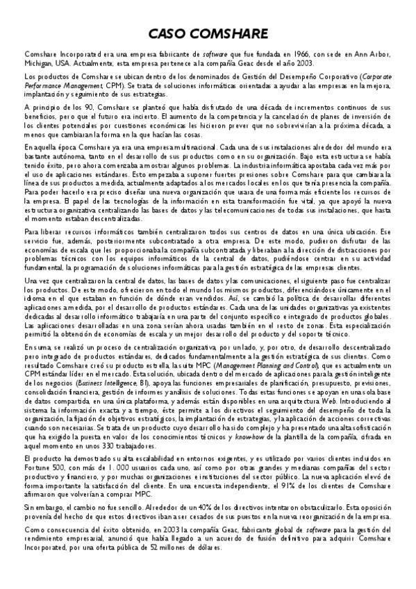 He publicado nuevos practicas de 4º Gestión de la Información: Práctica de Aula 5 - Caso Comshare.pdf