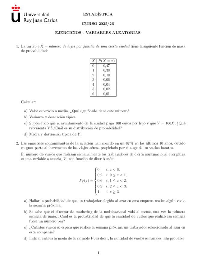 He publicado nuevos ejercicios de 1º Estadística: ejerciciosVariablesAleatorias.pdf