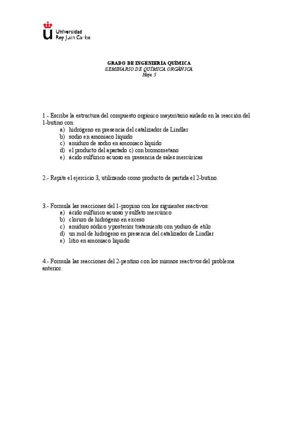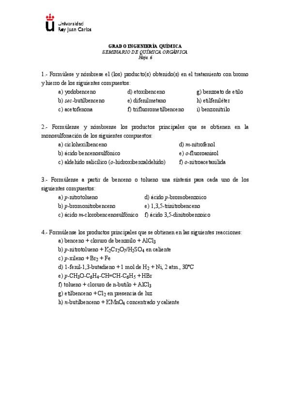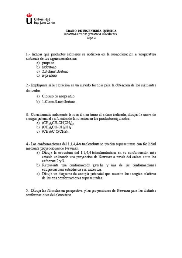 Asignaturas de Grado en Ingeniería Química (URJC)