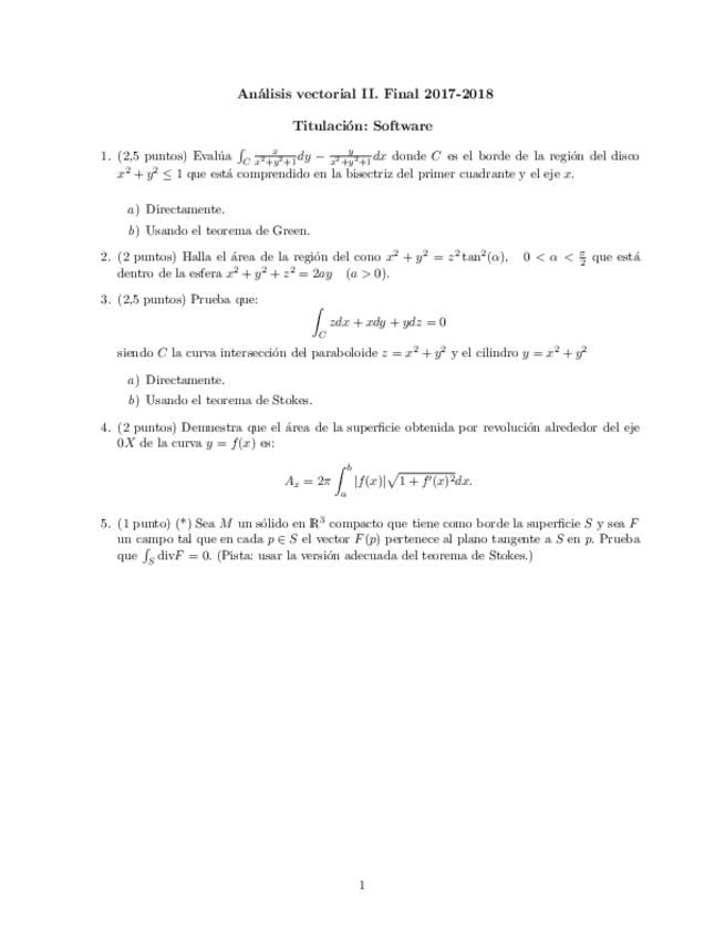 Análisis vectorial II. Exámenes✅