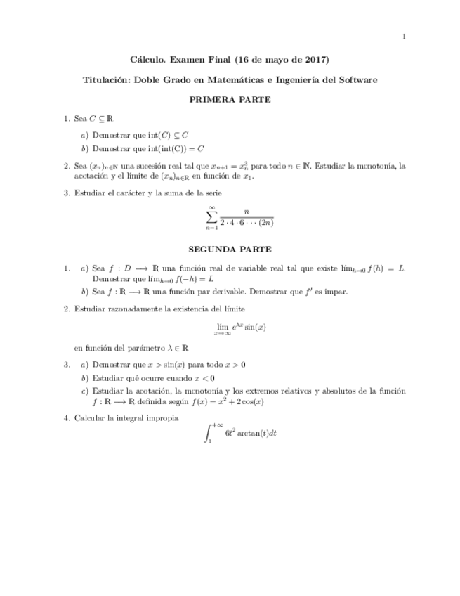 He publicado nuevos examenes de 1º Cálculo: Cálculo. Exámenes RESUELTOS✅