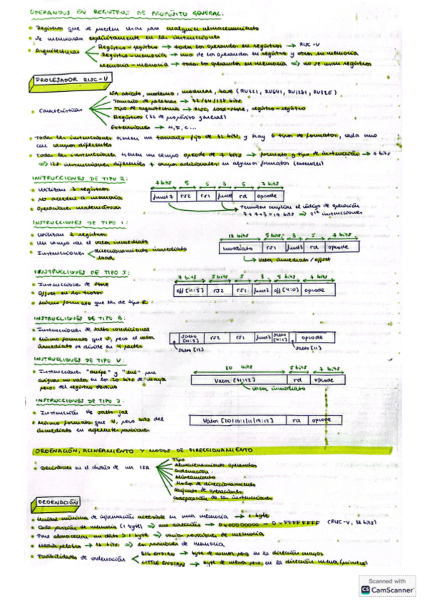 Apuntes diseño de un repertorio de instrucciones: tipos, almacenamiento de operandos, ordenación, alineamiento y modos de direccionamiento. Concretamente para el RISC-V