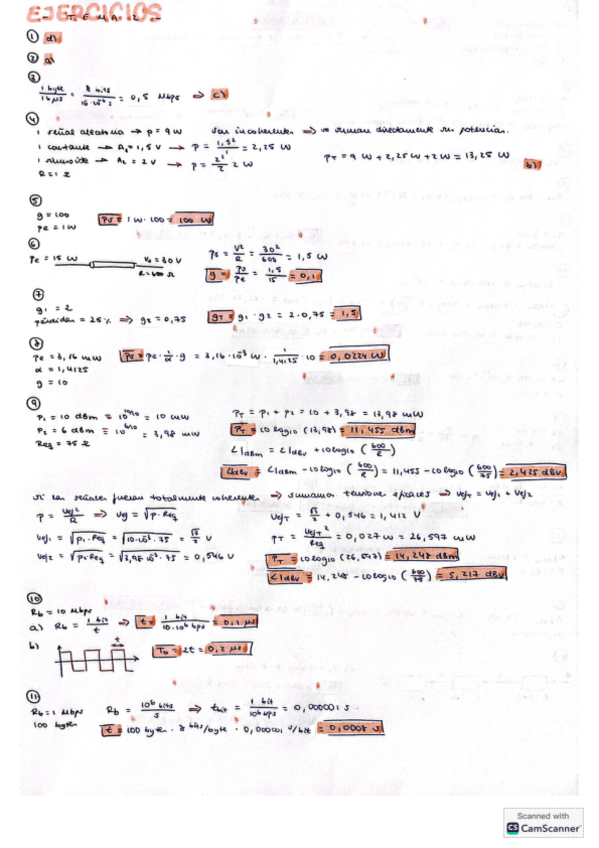 Ejercicios caracterización de sistemas de telecomunicación: potencia, ruido térmico, cuantificación, tasa binaria...