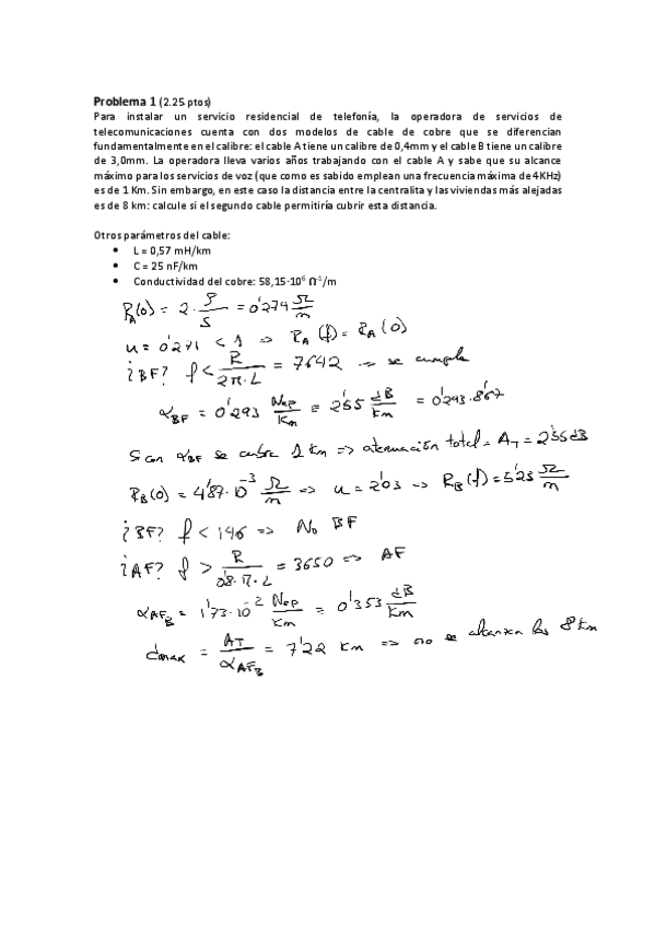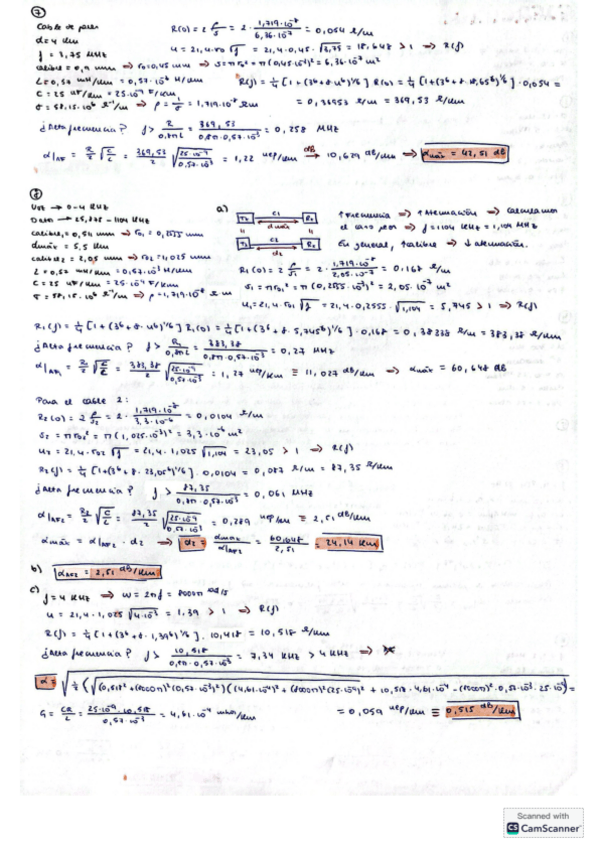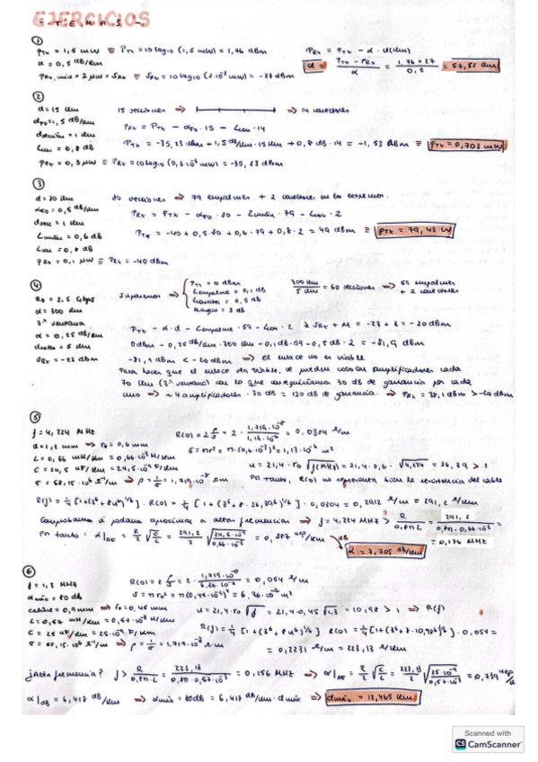 Ejercicios dimensionamiento de sistemas de telecomunicación: líneas de transmisión, fibra óptica, cables de pares y coaxiales...