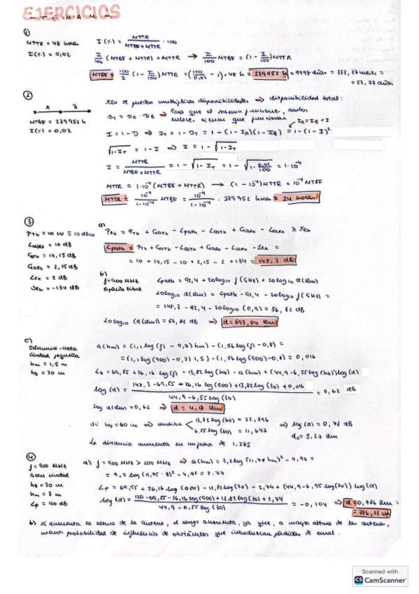 Ejercicios radiocomunicaciones: alcances de antenas, balances de potencias, sensibilidad, indisponibilidad, modelos de propagación...