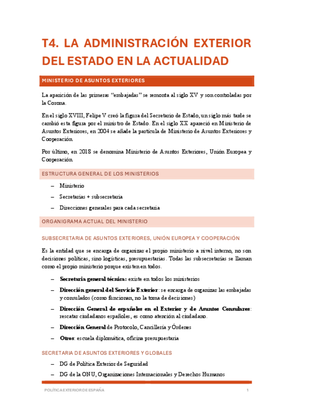 Apuntes con el temario para el primer parcial de Política Exterior de España (tres primeros temas).
