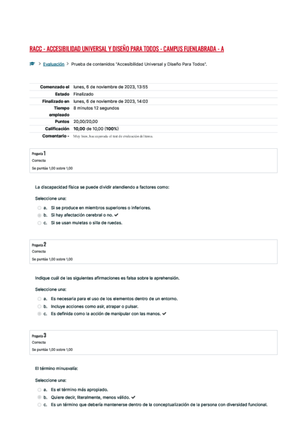 He publicado nuevos examenes de 5º Reconocimiento Académico de Créditos: Accesibilidad universal y Diseño para todos. Igualdad de género.pdf
