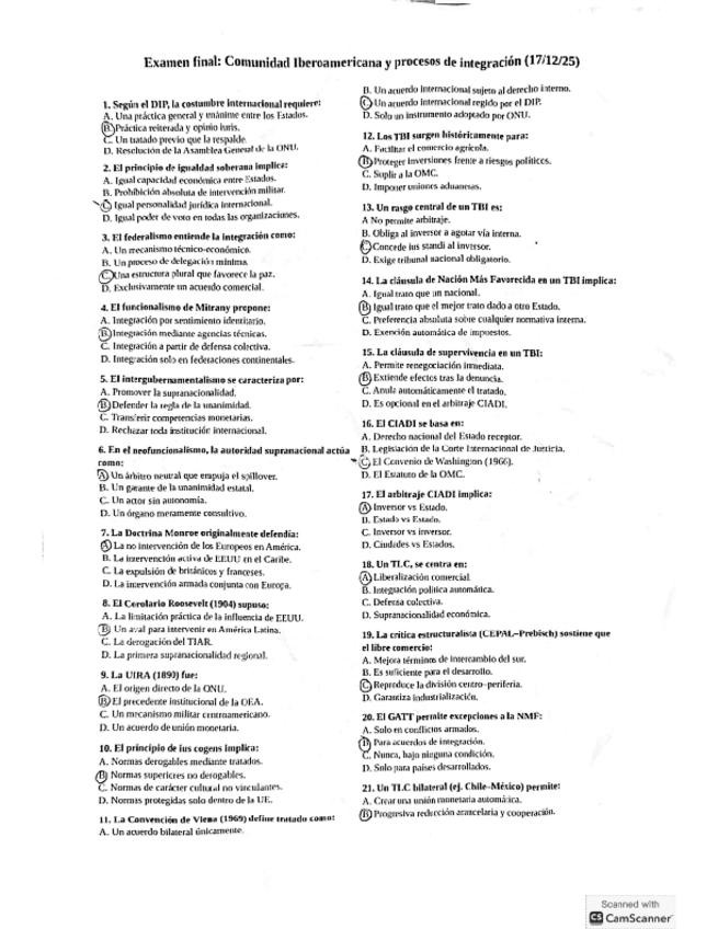 Examen final de la asignatura de comunidad iberoamericana realizado por Nicolás Bardio en diciembre de 2025