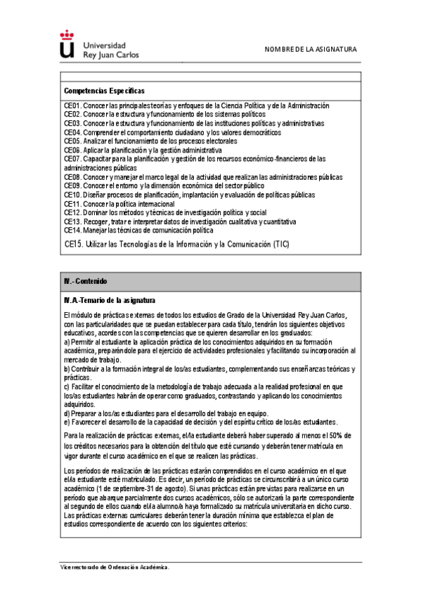 Asignaturas de Doble Grado en Ciencia Política y Gestión Pública y Economía (URJC)