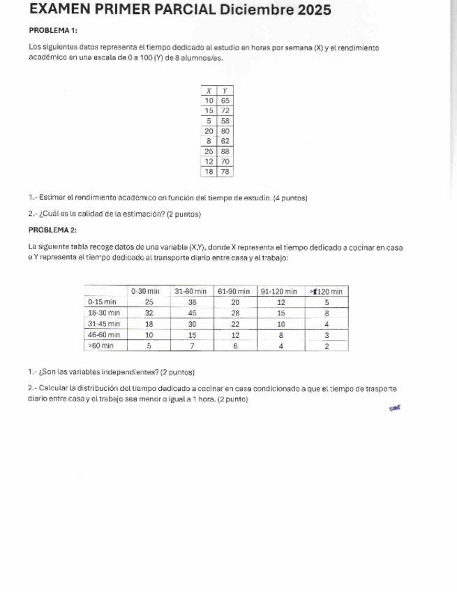 Examen de estadística descriptiva 1 y 2 variables. de la asignatura de estadística de la empresa. grado en contabilidad y finanzas. URJC.