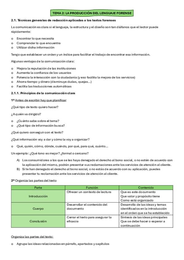 Apuntes Tema 2 de la asignatura Lenguaje Forense de 1º de Criminología de la URJC de Vicálvaro.