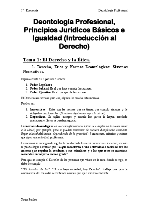 He publicado nuevos apuntes de 1º Deontología Profesional, Principios Jurídicos Básicos e Igualdad (introducción Al Derecho): TEMA-1-Deontologia-Profesional-Economia.pdf